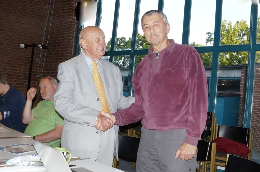 Peter Husfeld gratuliert Mike Bunke zur Wahl zum 1. Vorsitzenden des Schleswiger Schachvereins